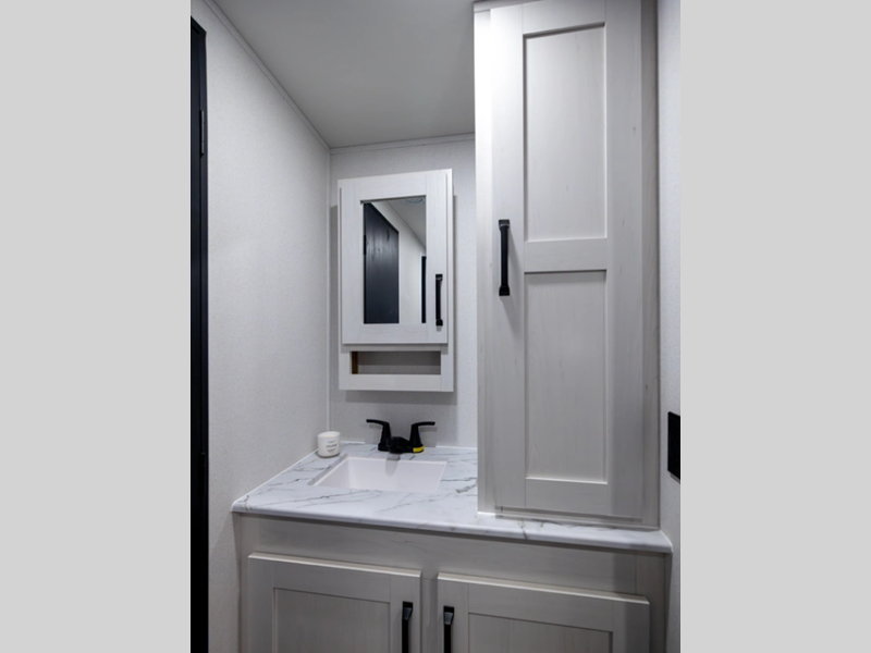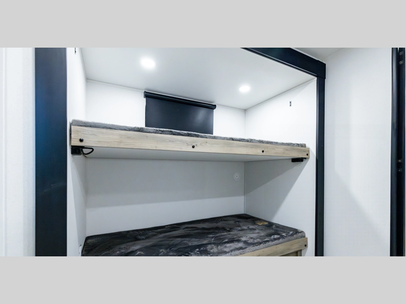 Each model is constructed with a fully enclosed and heated underbelly plus a fully laminated roof for added durability. There is also a power tongue jack outside, along with a power awning with LED lights, and slam latch baggage doors with magnets. Inside, you'll find roller shades, ball bearing drawer guides, USB ports, and more comforts and conveniences.