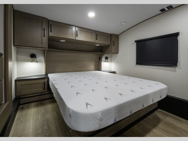 Reflection is built with the Arctic 4-Season Protection package which provides a 35K BTU high-capacity furnace, double insulated roof and front cap, a heated and underbelly with circulating heat, and 12V heat pads on the holding tanks to mention a few features that allow you to travel during any climate. The interior offers residential cabinetry, a deep-seated stainless-steel kitchen sink in the gourmet kitchen, a spacious shower with a glass door, and ductless flooring in the living area to name a few comforts.